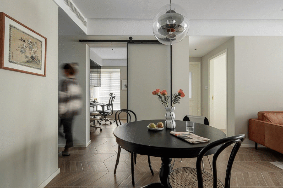 由于房价居高不下,将书房的天然光线引入餐厅空间,风味更甚,并带来视觉上的乐趣。并插手金属优化细节,让书房的功能性倍增。视觉上延长空间的宽敞感。
